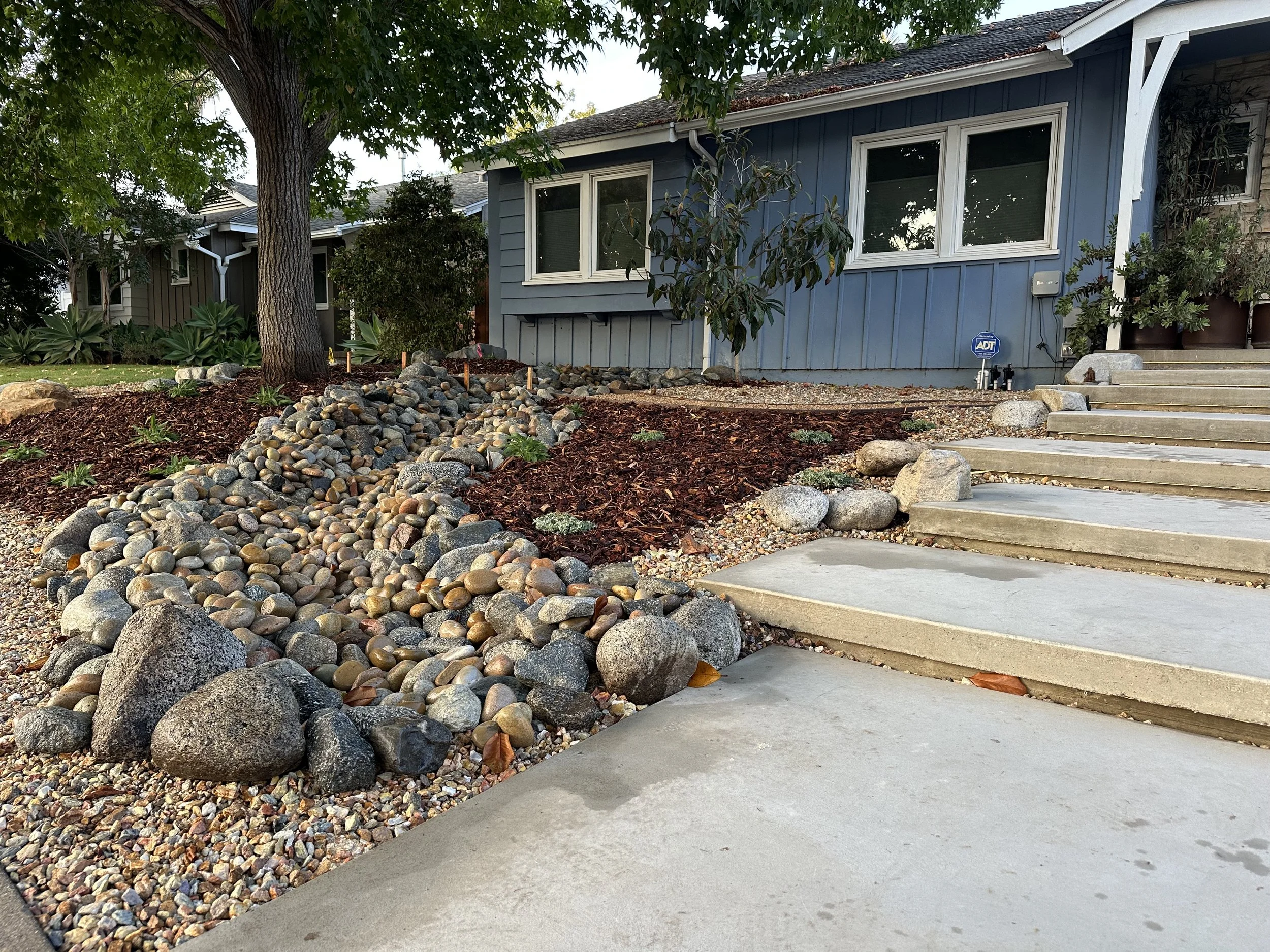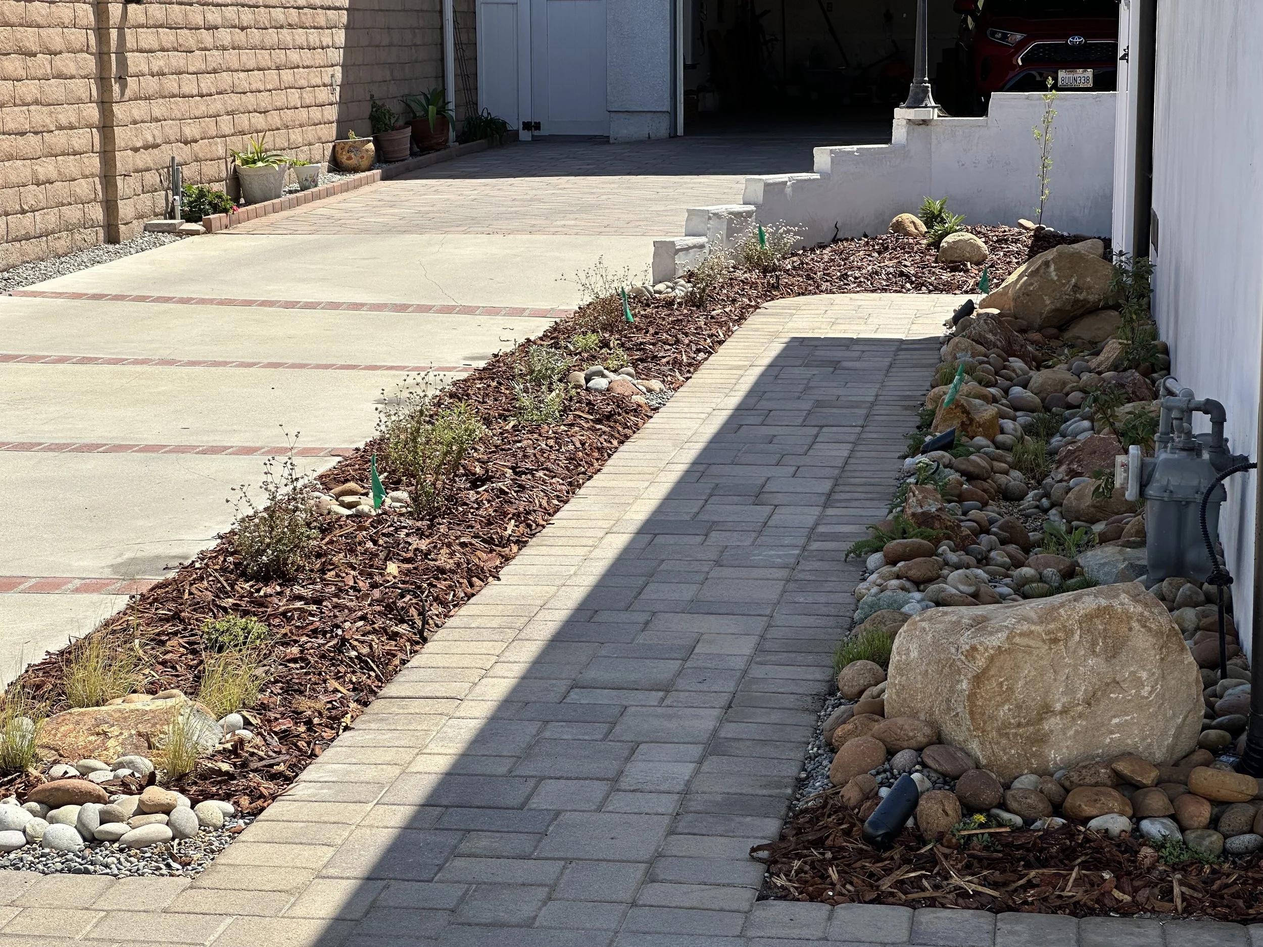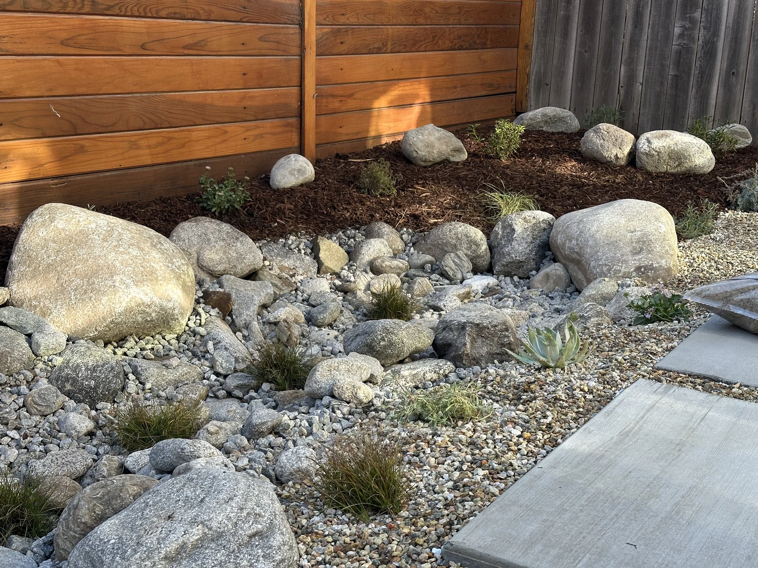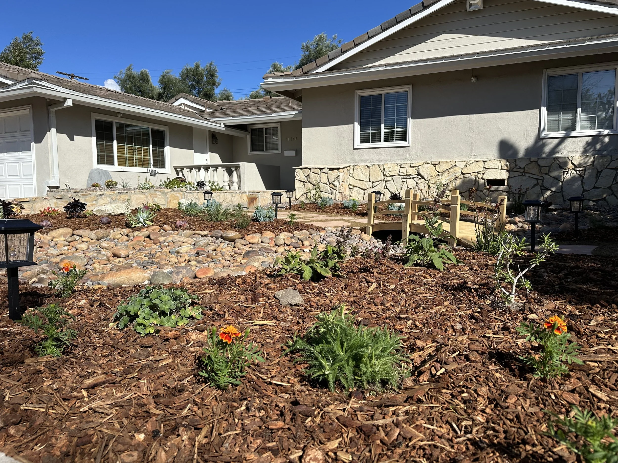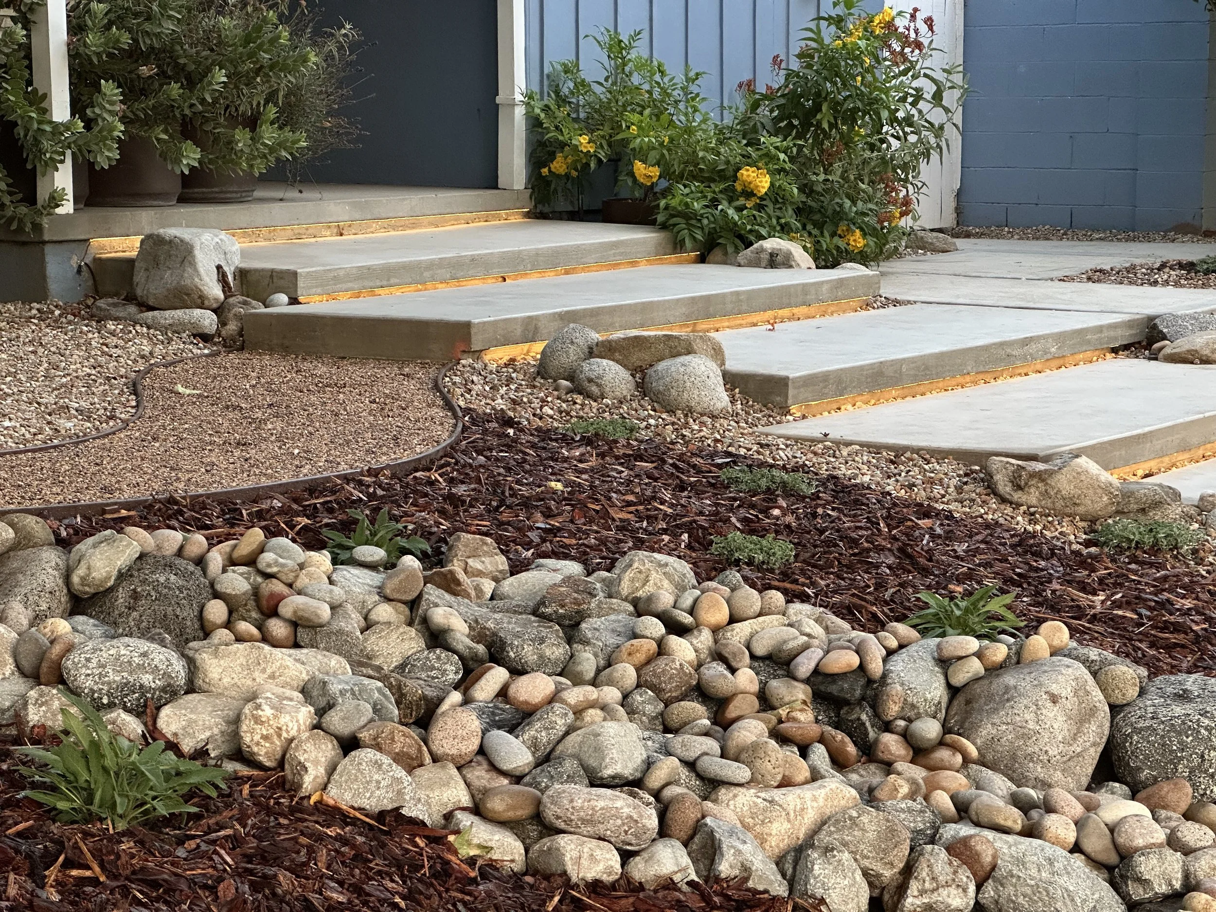 Waterwise design: Our designs prioritize water efficiency through drip irrigation, updated sprinkler systems, rainwater capture features, proper mulching, and permeable hardscaping. By minimizing water usage, we build landscapes that are both environmentally sustainable and cost-effective to maintain.